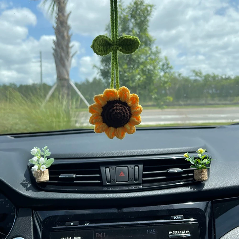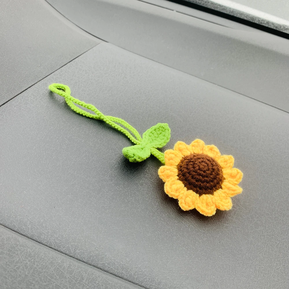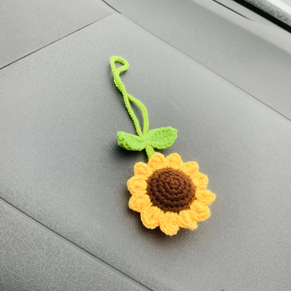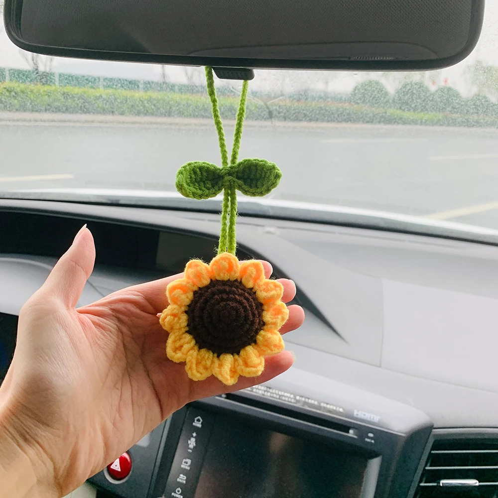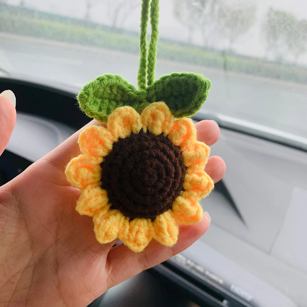 Handmade Crochet Sunflower Car Mirror Hanging Accessories